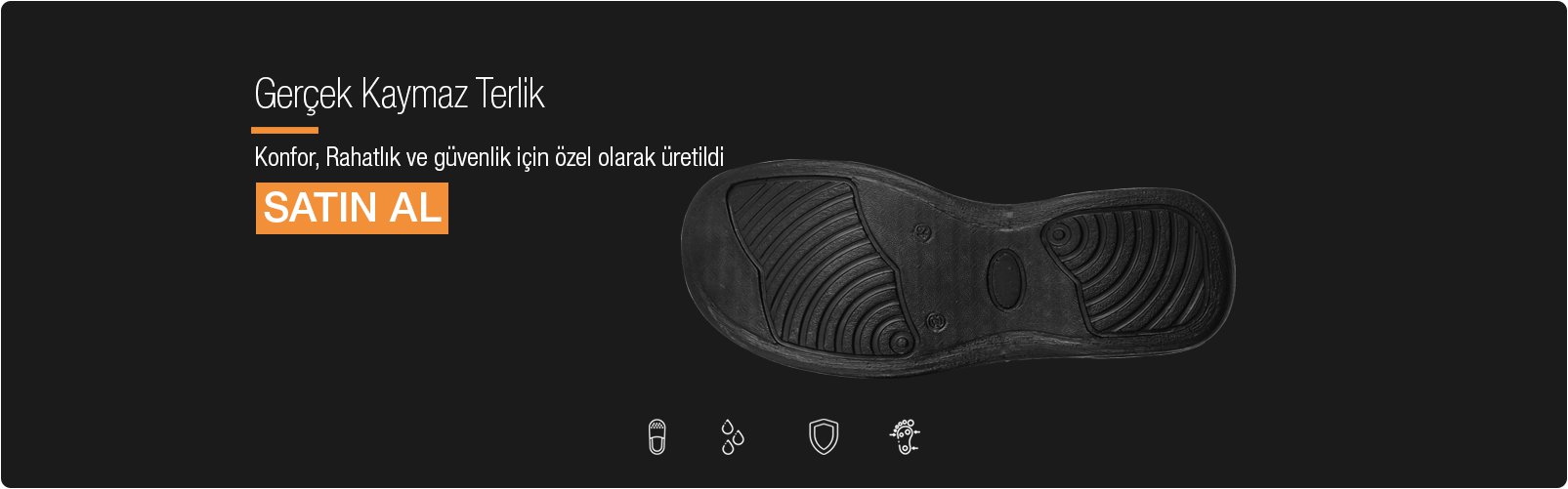 Terliklerin üretiminde kullanılan malzemeler zorlu çalışma ortamları düşünülerek özel olarak bir araya getirildi ve üretildi.